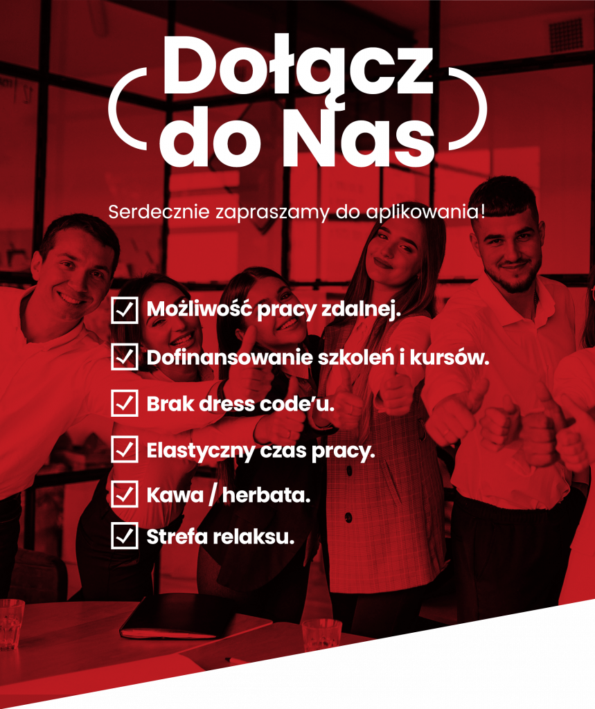 - Dajemy Ci również możliwość dostosowania czasu pracy do Twoich preferencji (work-life balance oraz praca zdalna).